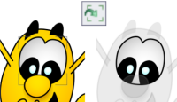 Groups can be embedded into other groups, without limit. In this example, entering the eyes will gray out the rest, showing what can and cannot be edited.